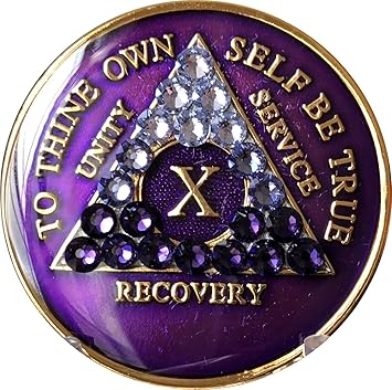 1 - 10 Year AA Medallion Reflex Glitter Lavender Purple Gold Plated Sobriety Chip. To order by phone call 01723 362111. 1 2 3 4 5 6 7 8 9 or 10 Year AA Medallion Antique Bronze And Blue Alcoholics Anonymous Sobriety Chip.