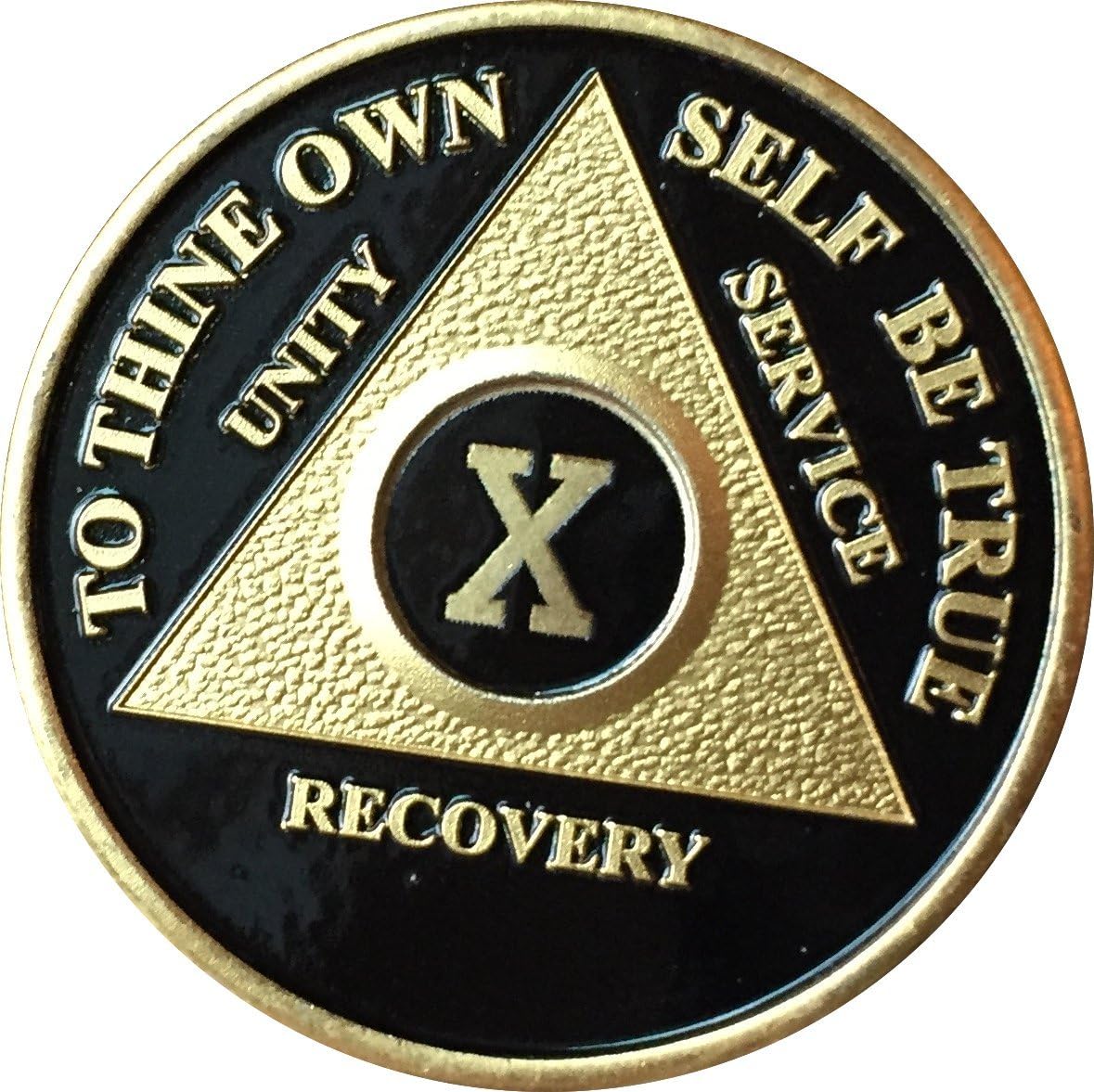 Amazon Com Recoverychip 10 Year Aa Medallion Elegant Black Gold Silver Bi Plated Alcoholics Anonymous Chip Toys Games