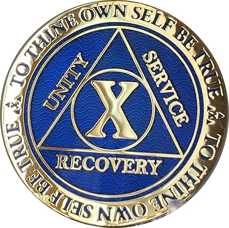 Recoverychip 10 Year Reflex Blue Gold Plated Aa Medallion Alcoholics Anonymous Sobriety Chip Toys Games Amazon Com