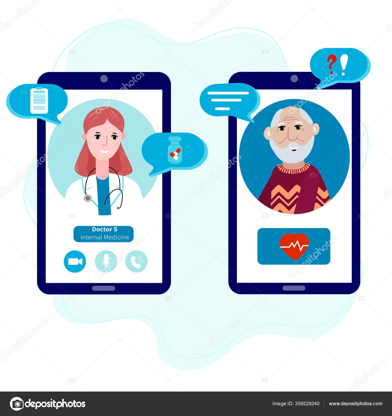 Senior Talking By Mobile Phone With A Doctor Online From Home Concept Of Telemedicine Medical Treatment Consultation Service During Pandemic Doctor With Old Patient Meet Online Vector Image By C Elena Y78
