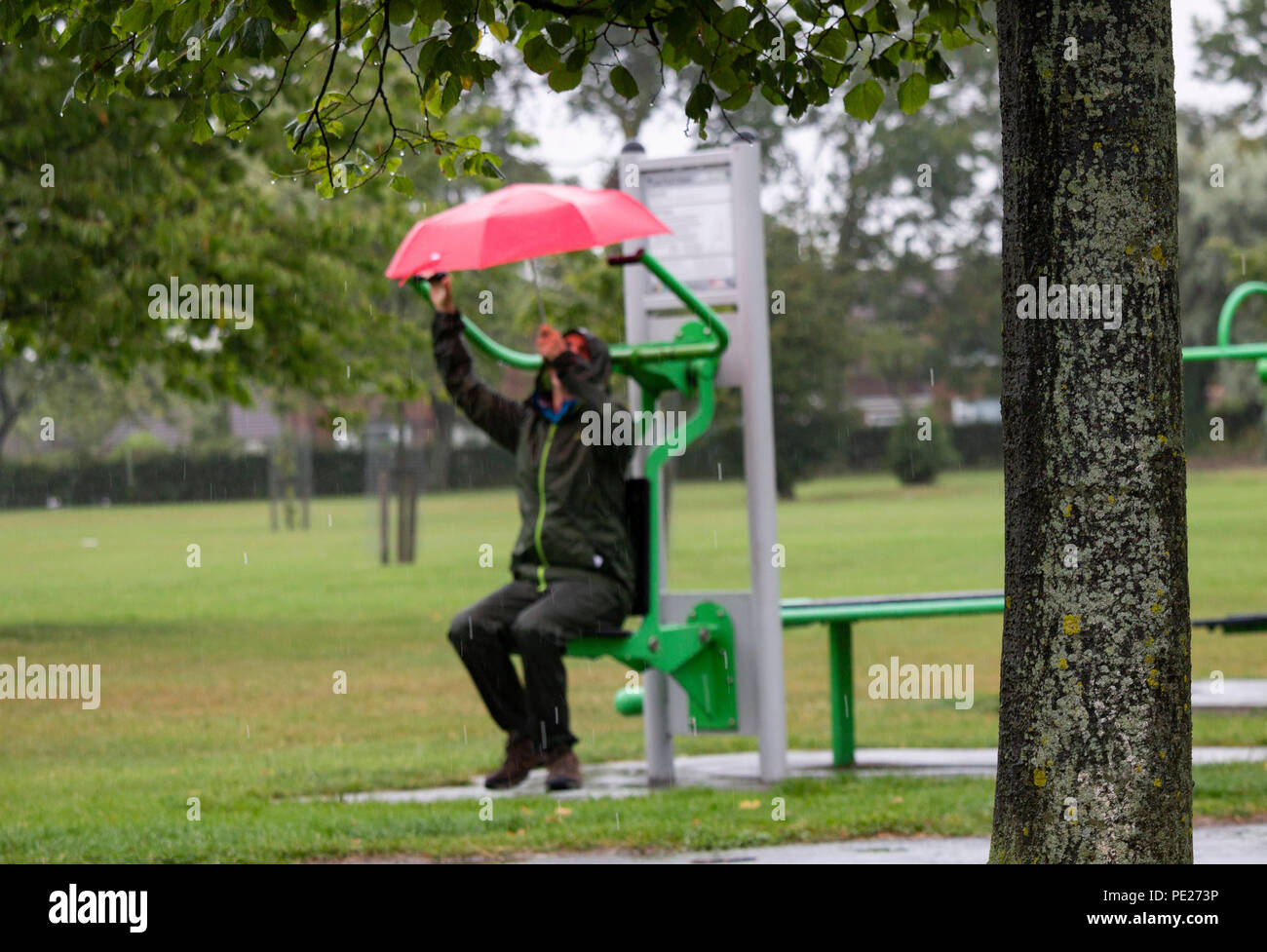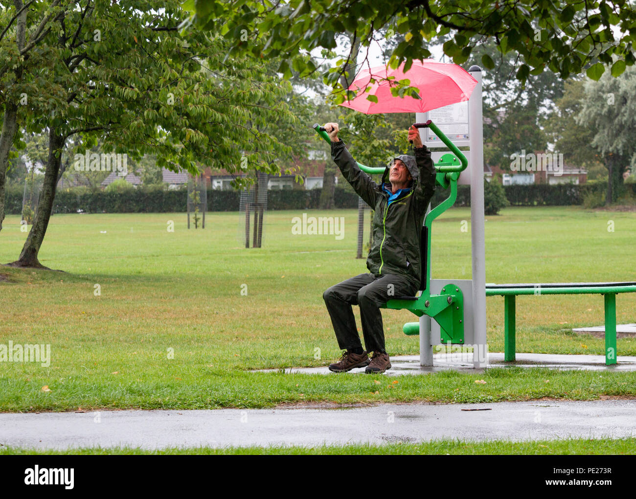 Billingham North East England United Kingdom 12th August 2018 Uk Weather Heavy Sunday Morning Rain Isn T Going To Stop This Person Working Out In Public Park In Billingham North East England Credit